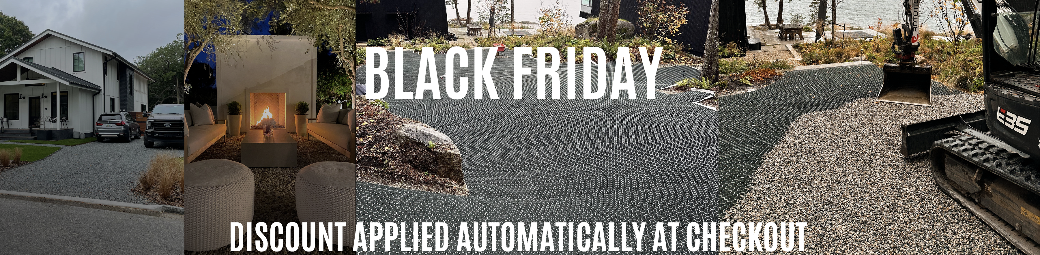 Our geo-textile is heat welded to the back of our grids. This closed-cell design ensures that your clean gravel remains separate from the sub-base, preventing grid upheaval and blocking weeds from accessing sub-base nutrients. This design also maintains 100% permeability, ensuring a stable, weed-free, and environmentally friendly surface.
