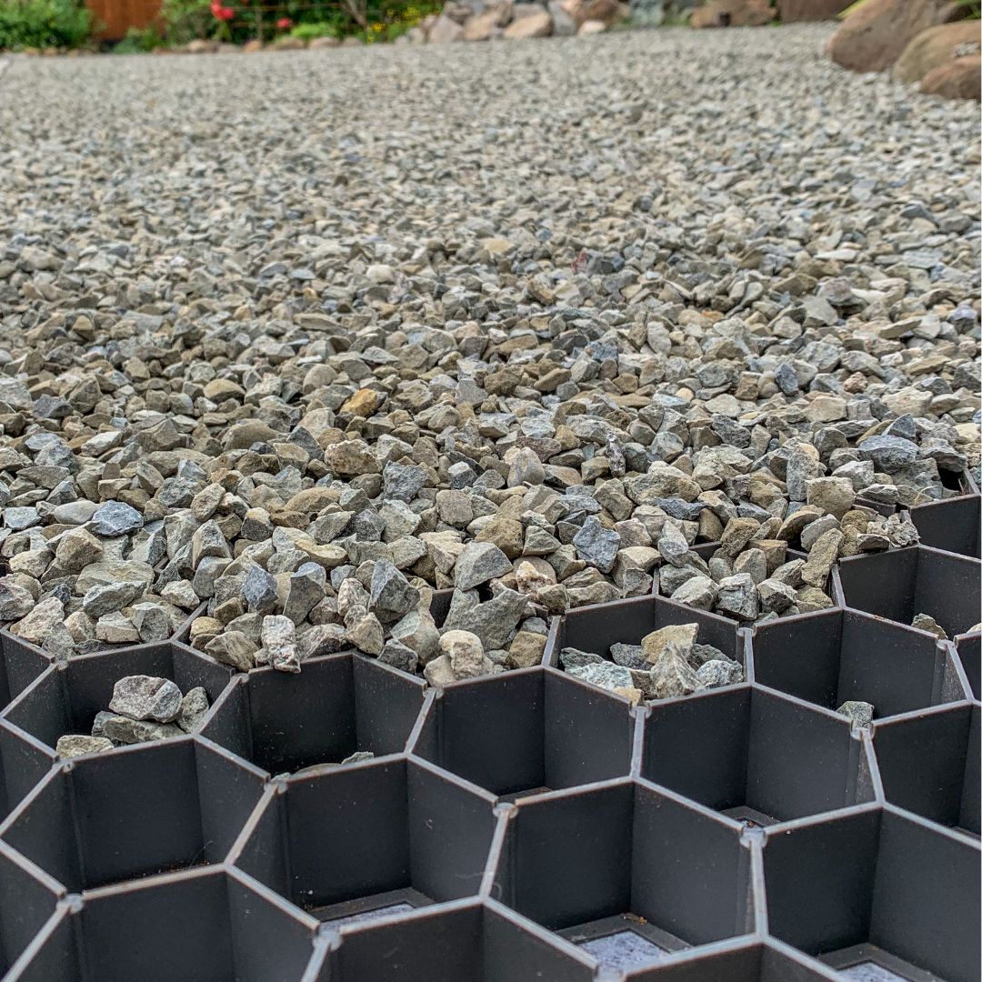 The grid system holds your gravel firmly in place. You gravel will not disperse, divot, and migrate overtime. Say goodbye to yearly top dressing or continous raking.