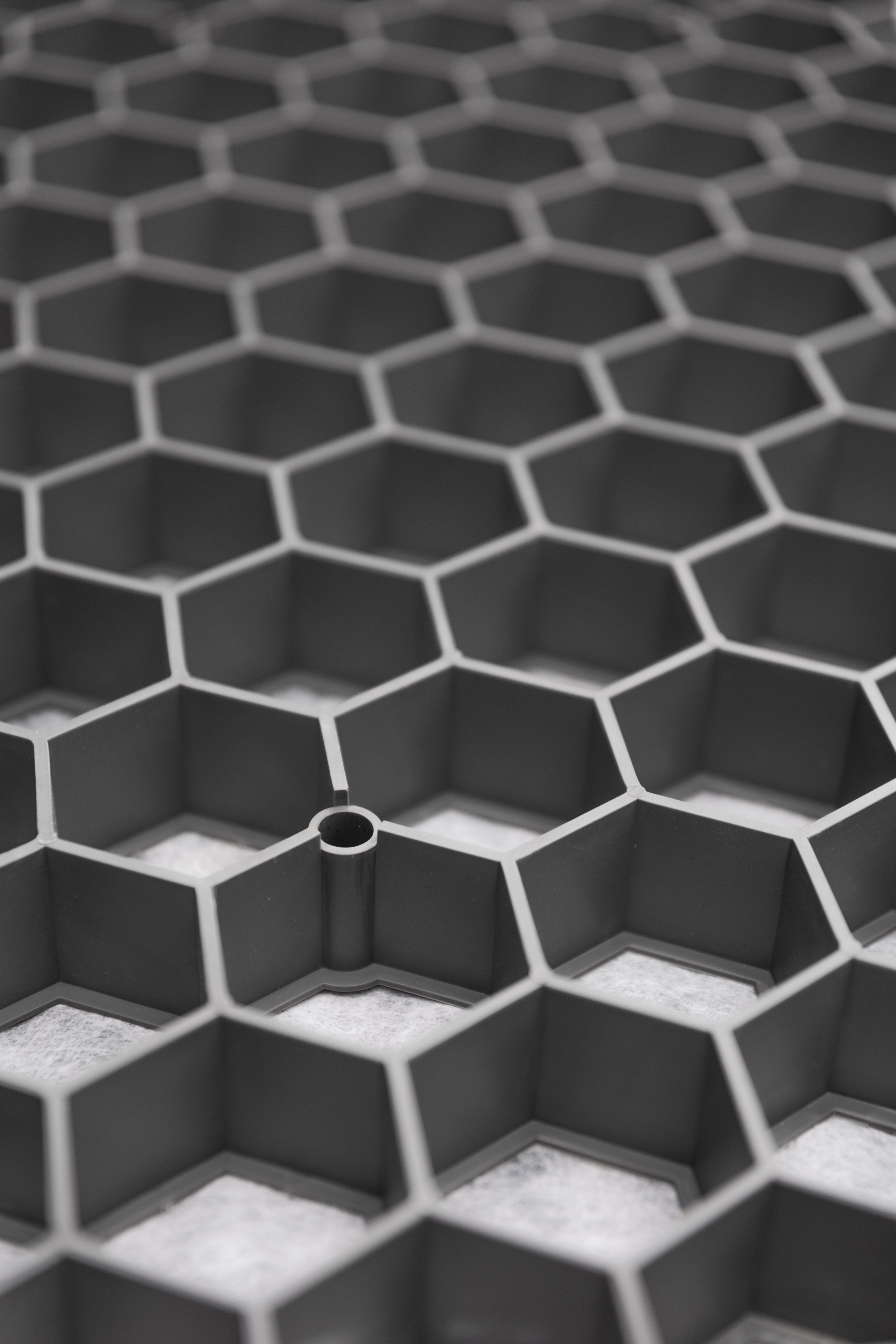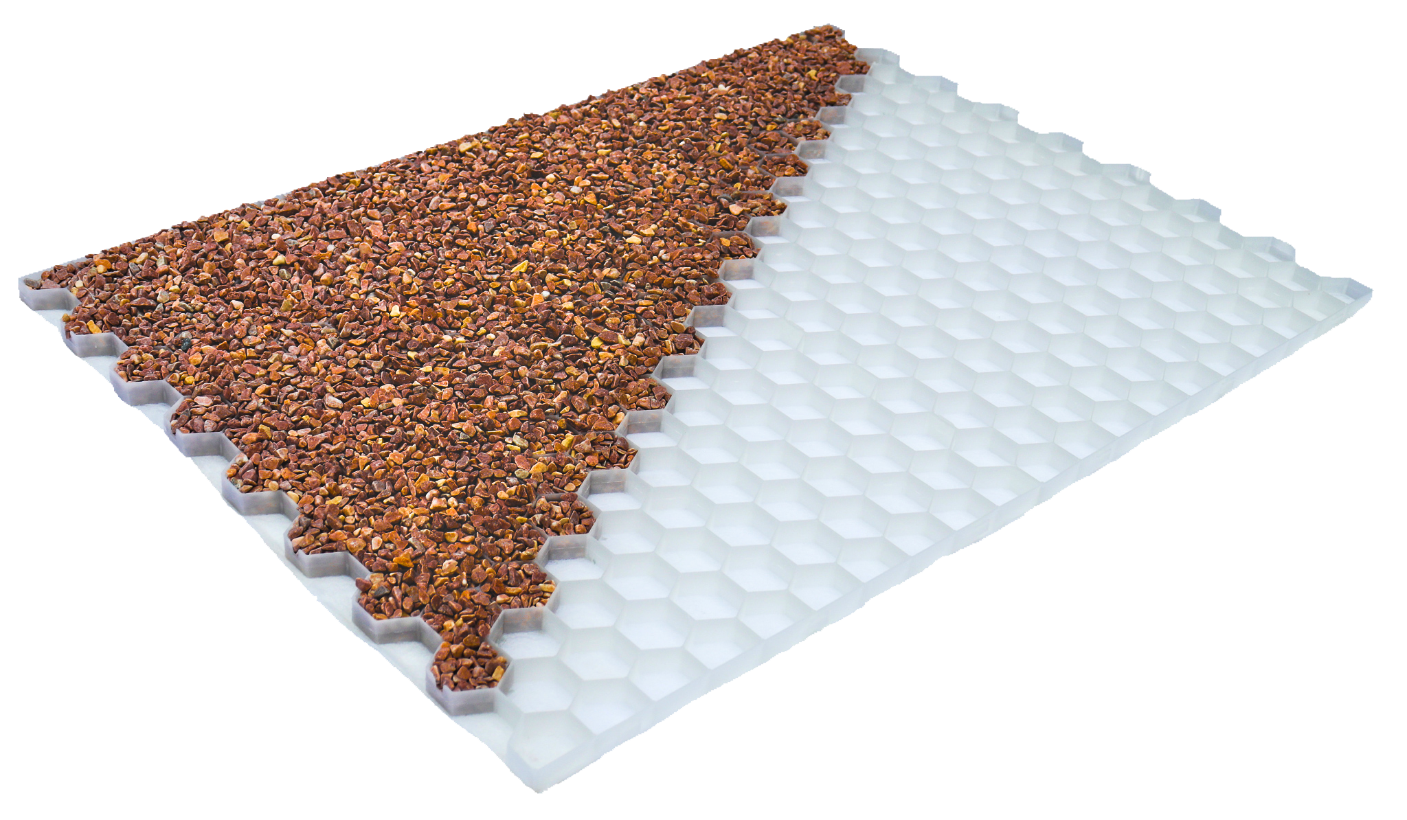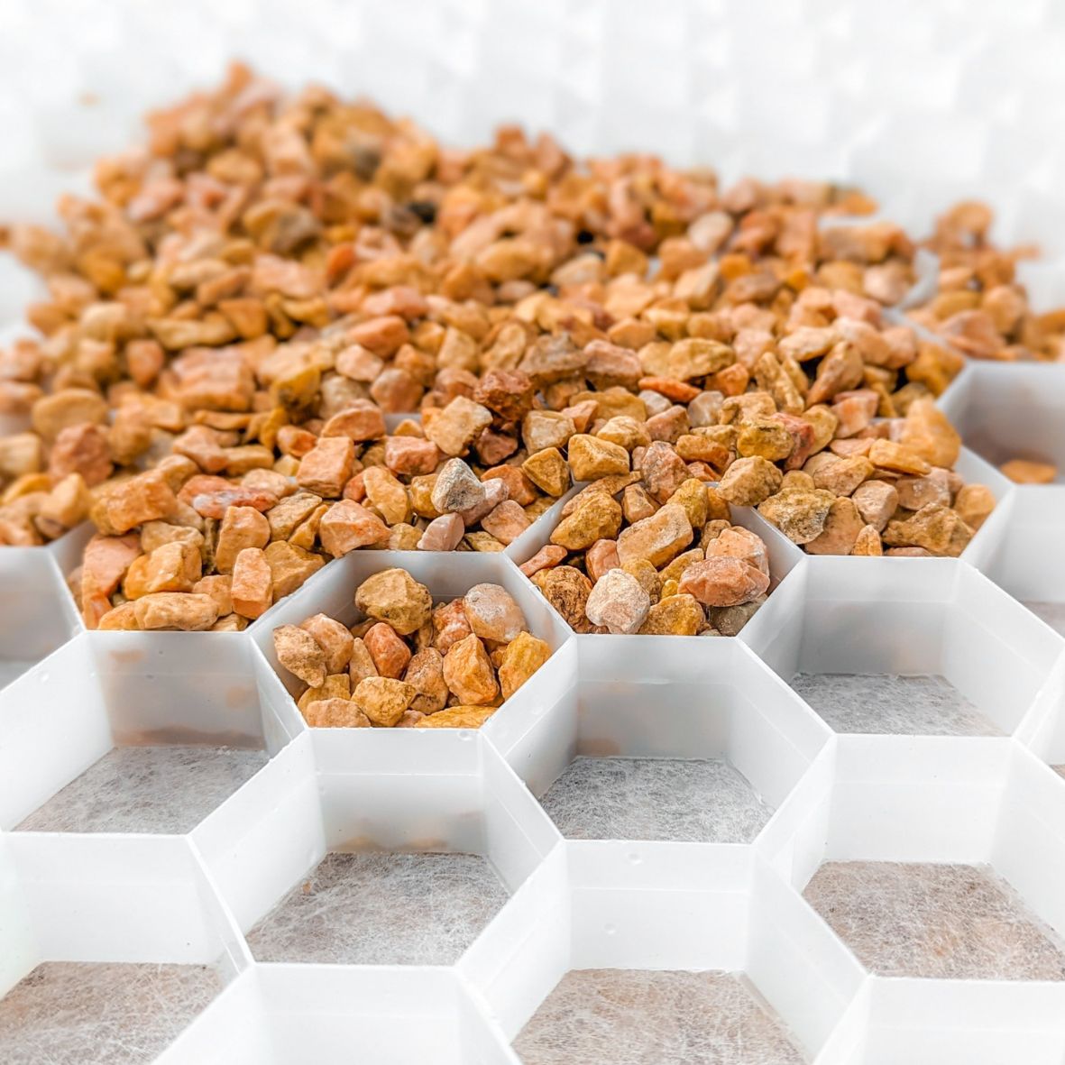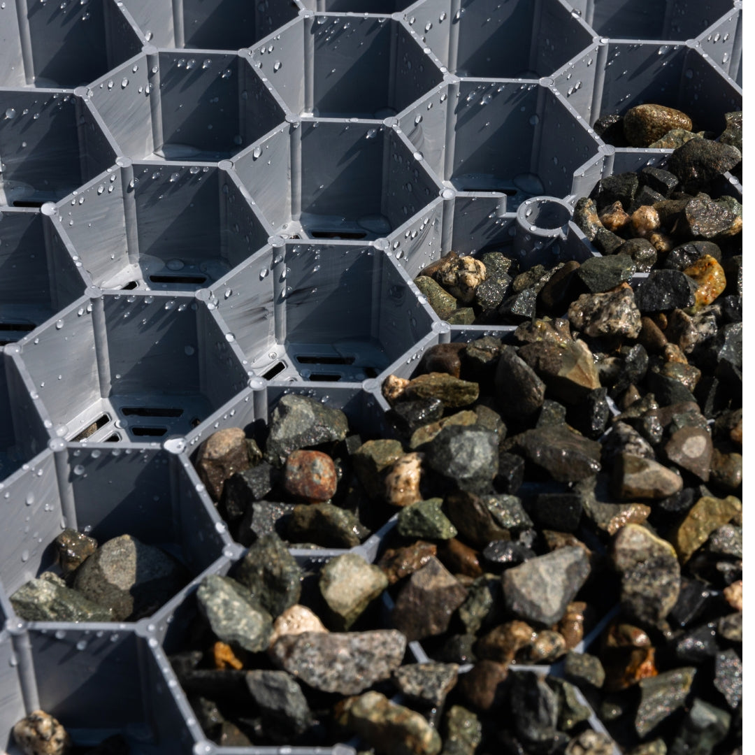 All our systems feature a closed-cell design, providing a permeable yet solid underside by heat welding a geo textile to the back. This innovative structure ensures your clean gravel infill remains separate from the sub-base, preventing any mixing or displacement that could dislodge the grids. The result? A stable, durable surface that stays clean and permeable, even under heavy use.