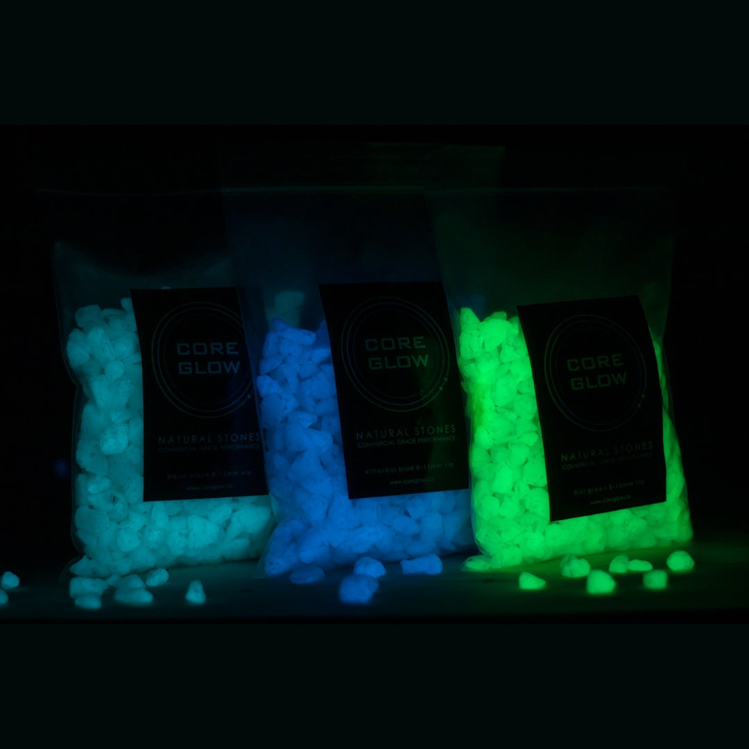 We offer our aggregates in two intensities: Quantum & Commercial grade. Quantum grade contains 60% more glow concentrate than Commercial, offering a brighter and longer lasting product. Commercial grade aggregate is the industry standard for phmtoluminscent aggregates, powerful, affordable, and durable.